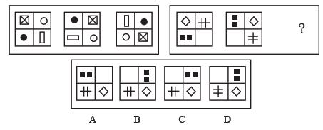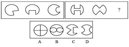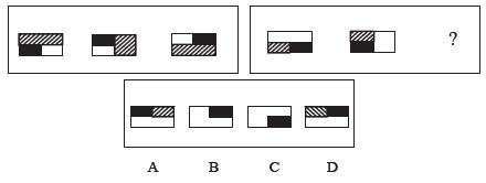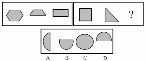 解答:正确答案为D。因为只有D能使两套图形具有相似性,仅仅元素不同,一个是半圆,一个是半个正方形,但两组图形中元素的排列规律完全相同。
