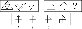 2.每道题包含两套图形和可供选择的4个图形。这两套图形具有某种相似性,也存在某种差异。要求你从四个选项中选择你认为最适合取代问号的一个。正确的答案应不仅使两套图形表现出最大的相似性,而且使第二套图形也表现出自己的特征。