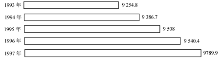 某市1993~1997年各年年底人口数示意图(单位:千人)