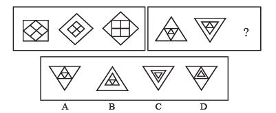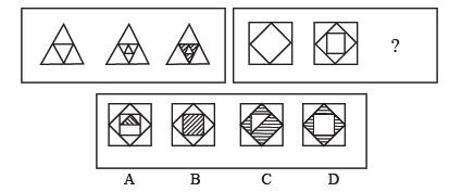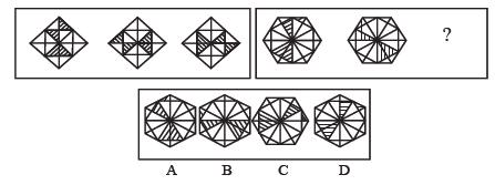 一、图形推理:共10题。每道题包含两套图形和可供选择的4个图形。这两套图形具有某种相似性,也存在某种差异。要求你从四个选项中选择你认为最适合取代问号的一个。