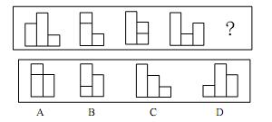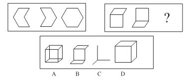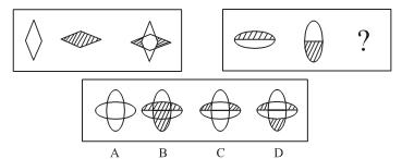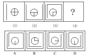 第二部分 判断推理 (共30题,参考时限30分钟) 一、图形推理:(本部分包括两种类型的题目,共10题。) (一)每道题包含两套图形和可供选择的4个图形。这两套图形具有某种相似性,也存在某种差异。要求你从四个选项中选择你认为最适合取代问号的一个。正确的答案应不仅使两套图形表现出最大的相似性,而且使第二套图形也表现出自己的特征。
