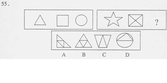 形。这两套图形具有某种相似性,也存在某种差异。要求你从四个选项中选择你认为追合适取代问号的一个。正确的答案应不仅使两套图形表现出最大的相似性,而且使第二套图形也表现出自己的特征。