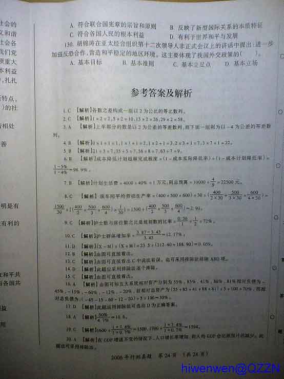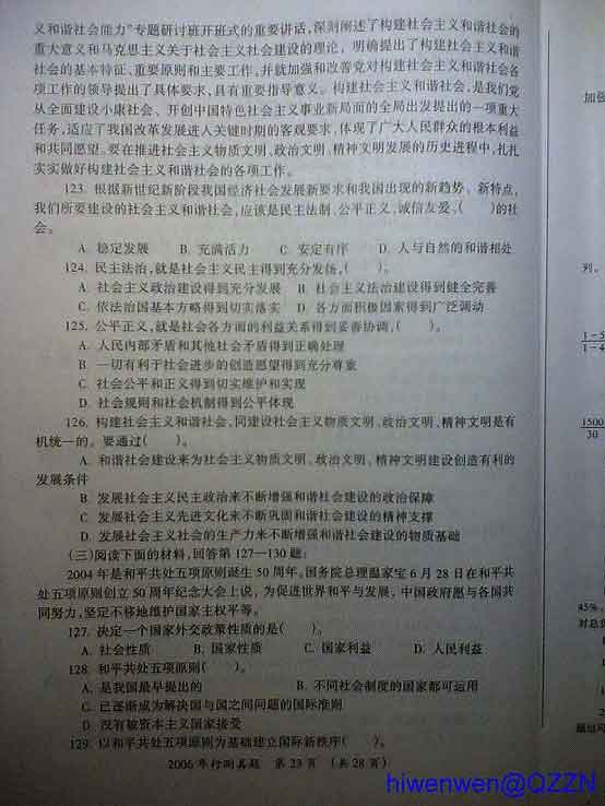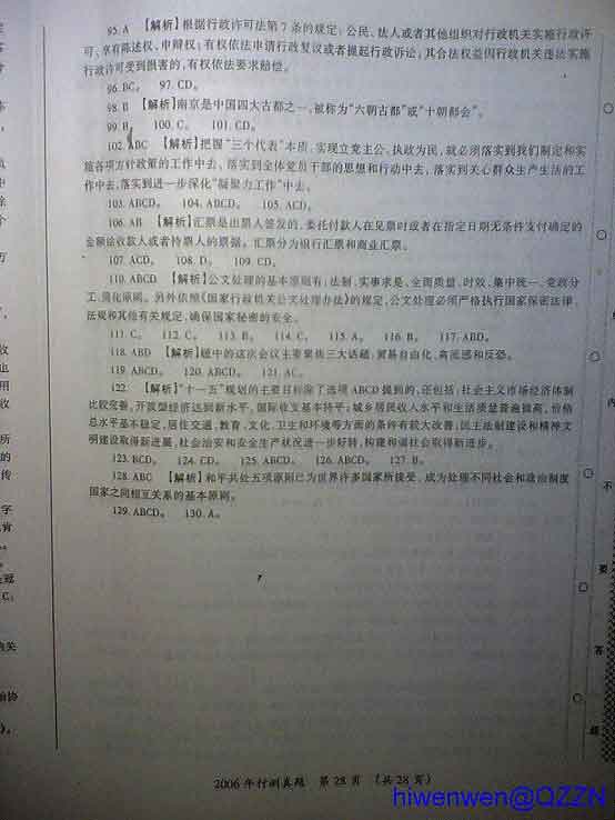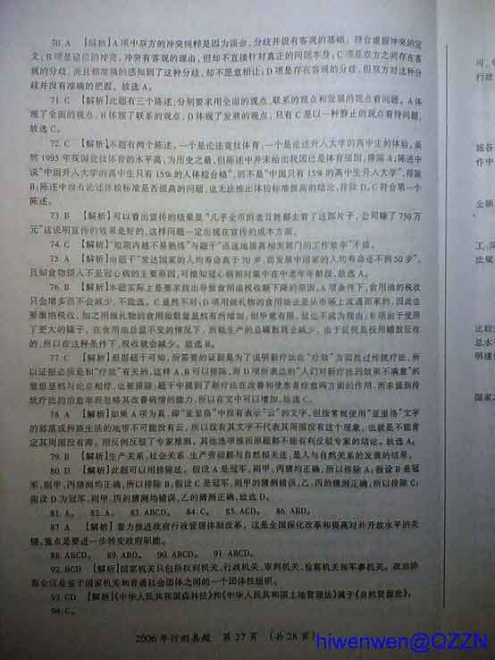 2006年上海市公务员考试行政能力测试真题及答案(七)