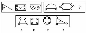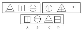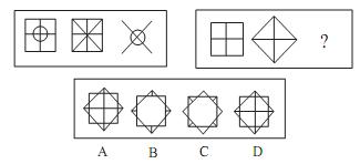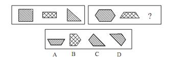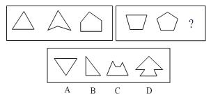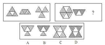 一、图形推理:共10题。每道题包含两套图形和可供选择的4个图形。这两套图形具有某种相似性,也存在某种差异。要求你从四个选项中选择你认为最合适取代问号的一个。正确的答案应不仅使两套图形表现出最大的相似性,而且使第二套图形也表出现自己的特征。