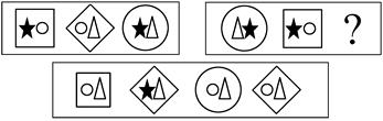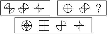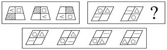 2.每道题包含两套图形和可供选择的4个图形。这两套图形具有某种相似性,也存在某种差异。要求你从四个选项中选择你认为最适合取代问号的一个。正确的答案应不仅使两套图形表现出最大的相似性,而且使第二套图形也表现出自己的特征。