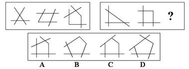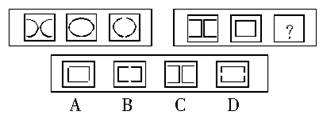 解答:正确答案为B。因为只有B能使两套图形具有相似性。