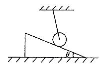 54.如图所示,小球系在细绳的一端,放在光滑的斜面上,用力将斜面在水平桌面上向右推移,使小球上升(最高点足够高)。那么,在斜面运动过程中,绳的拉力将: