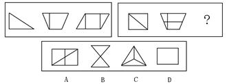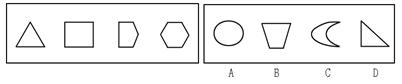 (二)每道试题左边的四个图形呈现一定的规律性,右边也有四个可供选择的图形,要求你从右边的四个图形中选出最适合的一个图形,此图形与左边的四个图形呈现完全一致的规律,则该图形即为正确答案。