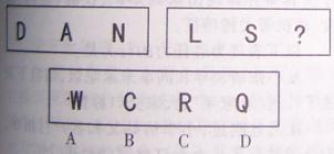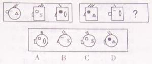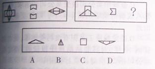 以下51—55题,每道题包含两套图形和可供选择的四个图形。这两套图形具有某种相似性,也存在某种差异。要求你从四个选项中选择你认为最适合取代问号的一个。正确的答案应不仅使两套图形表现出最大的相似性,而且使第二套图形也表现出自己的特征。