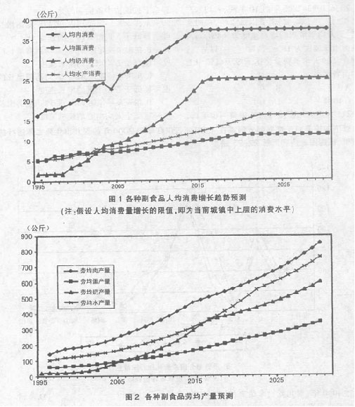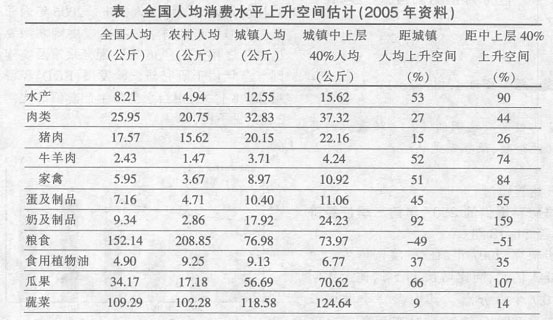 20.从1995—2005年的10年间,人均水产和肉类(猪、牛、羊、禽)消费以每年约5%的速度增长,人均蛋消费的增长速度为3.4%,奶制品的增长速度为18%。预计 以后。这些副食品的人均消费量将达到今天城镇中上层的消费水平。