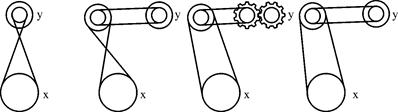 53. 下列四种情形中,轮子X与轮子Y的旋转方向一致的是 。