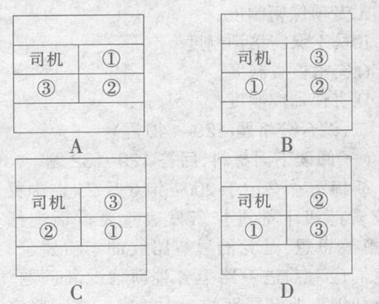 123.某局办公室小张,去机场接上级主管部门的A司长及B处长,在下列四个乘车座次的示意图中,“①”代表A司长:“②”代表B处长:“③”代表小张。那么,符合公务礼仪的乘车座次的是????。