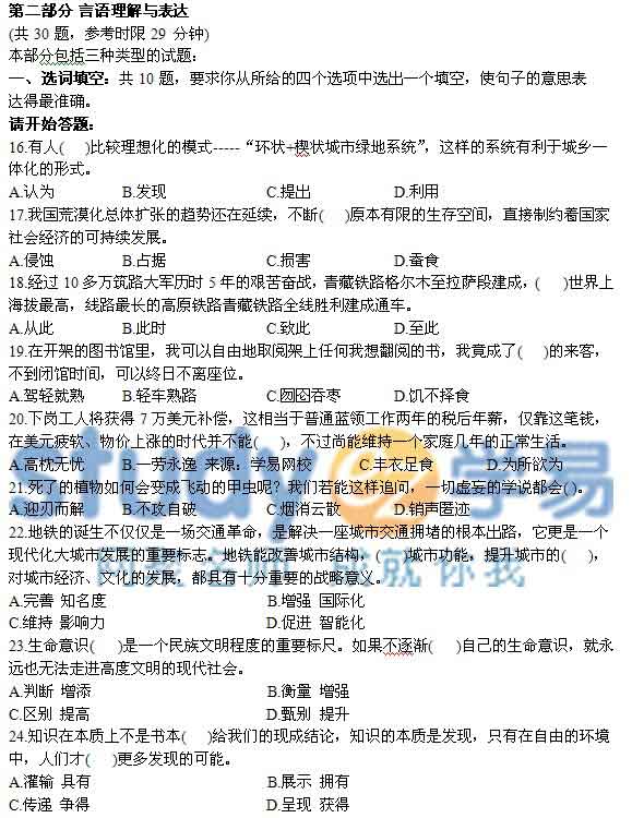 四个选项中选出一项来完成陈述。注意:答案可能是对文字内容的复述,有时则满足了陈述