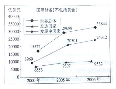 107.2000年到2006年印度国际储备量的平均增长速度低于()