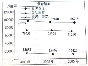 106.2000年到2006年黄金储备量下降幅度超过11%的国家有多少个?()