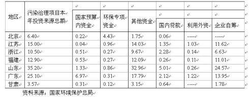 表 2003年我国部分地区工业污染治理投资来源情况(亿元)