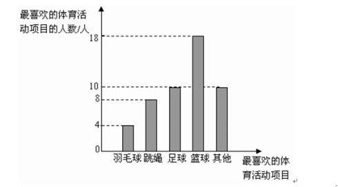 为了响应“每天锻炼一小时”这一号召,某校围绕着“你最喜欢的体育活动项目是什么?”的问题,对在校学生进行了随机抽样调查,从而得到一组数据。每位被调查学生只允许选择一项体育活动。下图是根据这组数据绘制的条形统计图。请结合统计图回答下列问题: