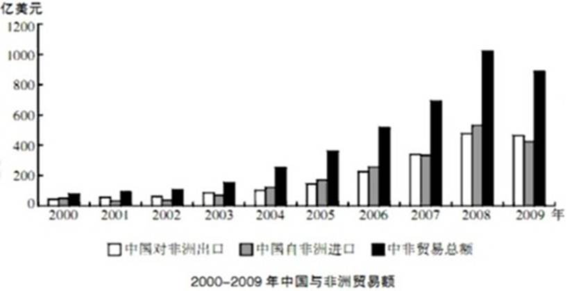 D.2001-2009年,中国与非洲双边贸易总额保持逐年上升的趋势