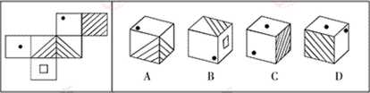 【解析】A。本题考查重构推理,只有A项可由平面图折成。B、C、D三项中的“A”“T”“A”指向均不正确。因此,本题选择A选项。