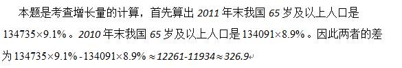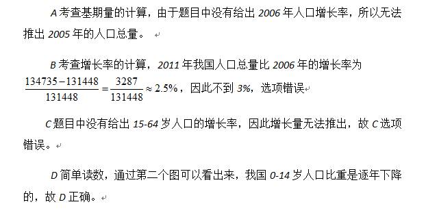 116.【解析】A。明显看出,2011年的增长率和2010年是一样的,但是2011年的现期量明显大于2010年,所以2011年的人口增长量高于2010年的水平(增长率相差不大的情况下,现期量大,增长量大)