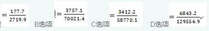 D选项的量级比A、B、C三项小,排除D选项。A、B、C三项量级相同,用直除的方法,首位分别为6、5、5.所以最高的是A选项。因此选择A。