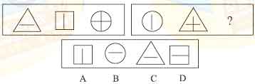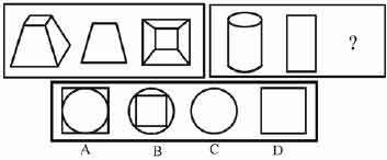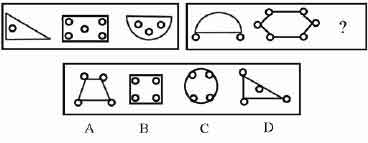 解答:正确答案为D。因为只有D能使两套图形具有相似性,仅仅元素不同,一个是半圆,一个是半个正方形,但两组图形中元素的排列规律完全相同。