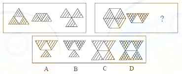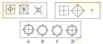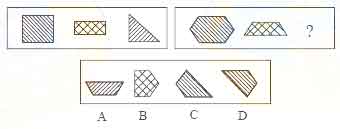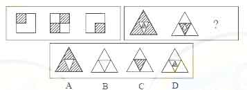 三、图形推理:共10题。每道题包含两套图形和可供选择的4个图形。这两套图形具有某种相似性,也存在某种差异。要求你从四个选项中选择你认为最合适取代问号的一个。正确的答案应不仅使两套图形表现出最大的相似性,而且使第二套图形也表出现自己的特征。