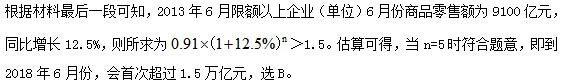 【解析】A。城镇消费品零售额1-5月平均值为