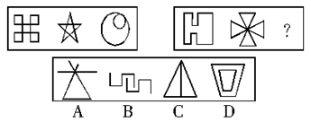 解答:正确答案为B。因为只有B能使两套图形具有相似性。