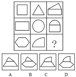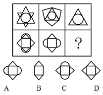 三、图形推理:共5题。每道题包含问题图形和可供选择的四个图形。请选出最合适的一项。请开始答题: