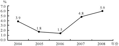 图1 2004—2008年居民消费价格涨跌幅度
