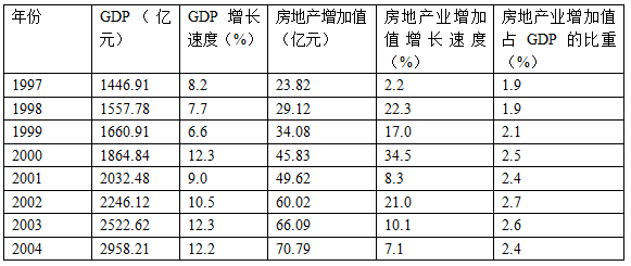 某省1997—2004年GDP及房地产业增加值
