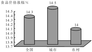 D. 2008年城市居民食品消费价格涨跌幅度为14.5%