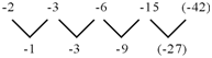 观察-1,-3,-9,很容易发现这是一个幂次数列,即-30,-31,-32,因此正确答案为-33+(-15)=-42。故选A。