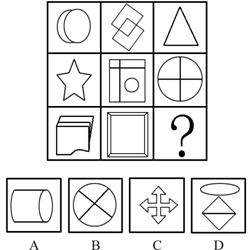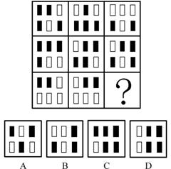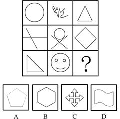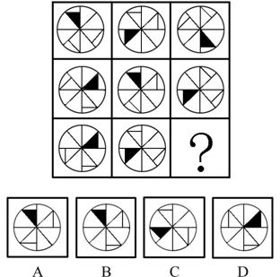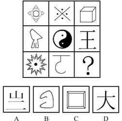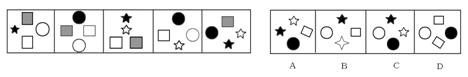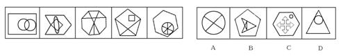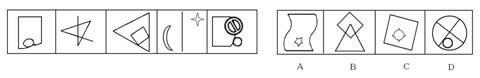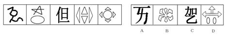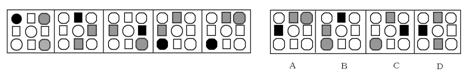 (一)每道题在左边的题干中给出一套图形,其中包括五个图,这五个图形呈现一定的规律性。在右边给出一套图,其中有四个图,让考生从中选出一个作为保持左边五个图规律性的第六个图。