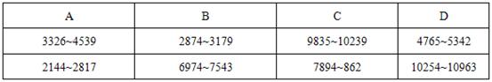 第二类题目:先呈现一个数字区间表格,在随后题目中,每一道题都给出一个数字,要求考生将这一数字与表格中的数字区间进行比较,判断这一数字位于哪一数字区间,这一数字区间所在的标号字母即为正确答案。