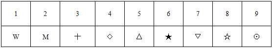 A.W☆△十 B.W⊙▽◇ C.十☆WM D.M☆⊙△