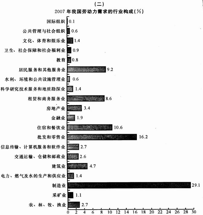 105.2007年我国第一产业(农、林、牧、渔业)、第二产业(采矿业,制造业,电力、燃气及水的生产和供应业,建筑业)劳动力需求占劳动力总需求的比重之差是( )