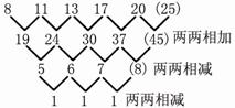 2.C [解析]相邻两项之和组成各项为19,24,30,37的数列,仔细观察,这是一个二级等差数列,故下一项应为45,则原数列第6项为45-20=25。