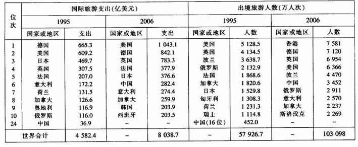 (二)1995年、2006年世界前十位国家或地区国际旅游支出及出境旅游人数