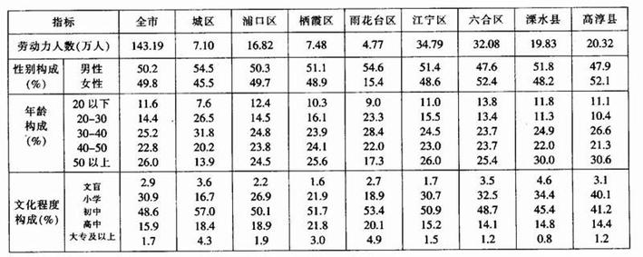 第二次农业普查南京市各区县农村劳动力资源总量及构成表
