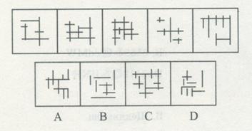 (一)每道题在左边的题干中给出一套图形,其中包括五个图,这五个图呈现一定的规律性。在右边给出一套图形,其中有四个图,从中选出唯一的一项作为保持左边五个图规律性的第六个图。