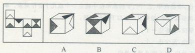 (三)左边给定的是纸盒外表面的展开图,右边哪一项能由它折叠而成?请把它找出来。