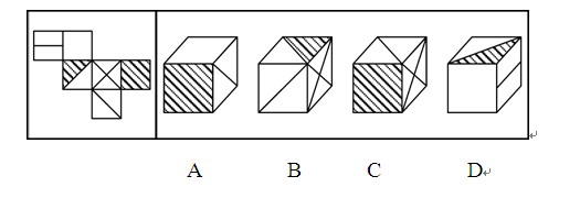 70.左边给定的是纸盒的外表面,下面哪一项是由它折叠而成: