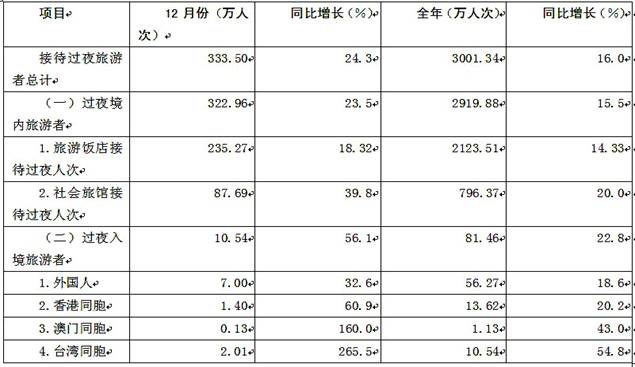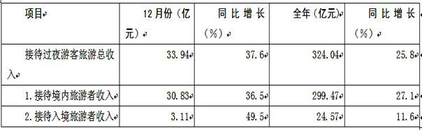 该省2011年12月及全年接待过夜游客的旅游收入情况