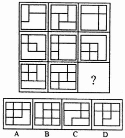 一、图形推理。请从所给的四个选择项中,选择最适合的一个填在问号处,使之呈现一定的规律性。