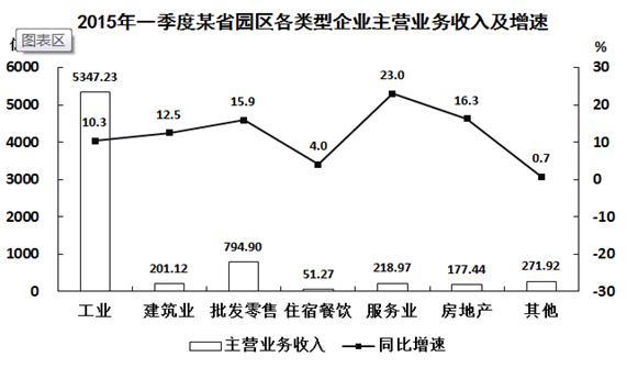 2015年一季度,某省省级及以上园区(以下简称园区)实现主营业务收入7062.85亿元,同比增长11%,实现主导产业主营业务收入4369.54亿元,同比增长10.4%。