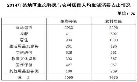 114.2014年该地区农村居民人均生活消费支出与生态移民人均生活消费支出金额相差在300元以上的有几项?