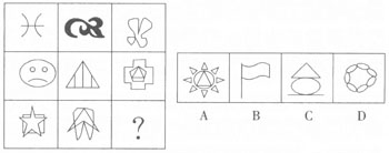 一、图形推理。请从所给的四个选项中,选择最合适的一个填入问号处,使之呈现一定的规律性。