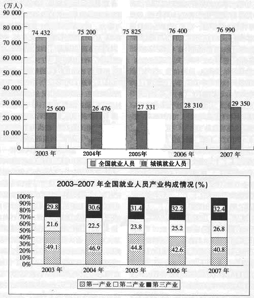 117.2007年和2003年相比,第一产业的就业人数约下降了∶